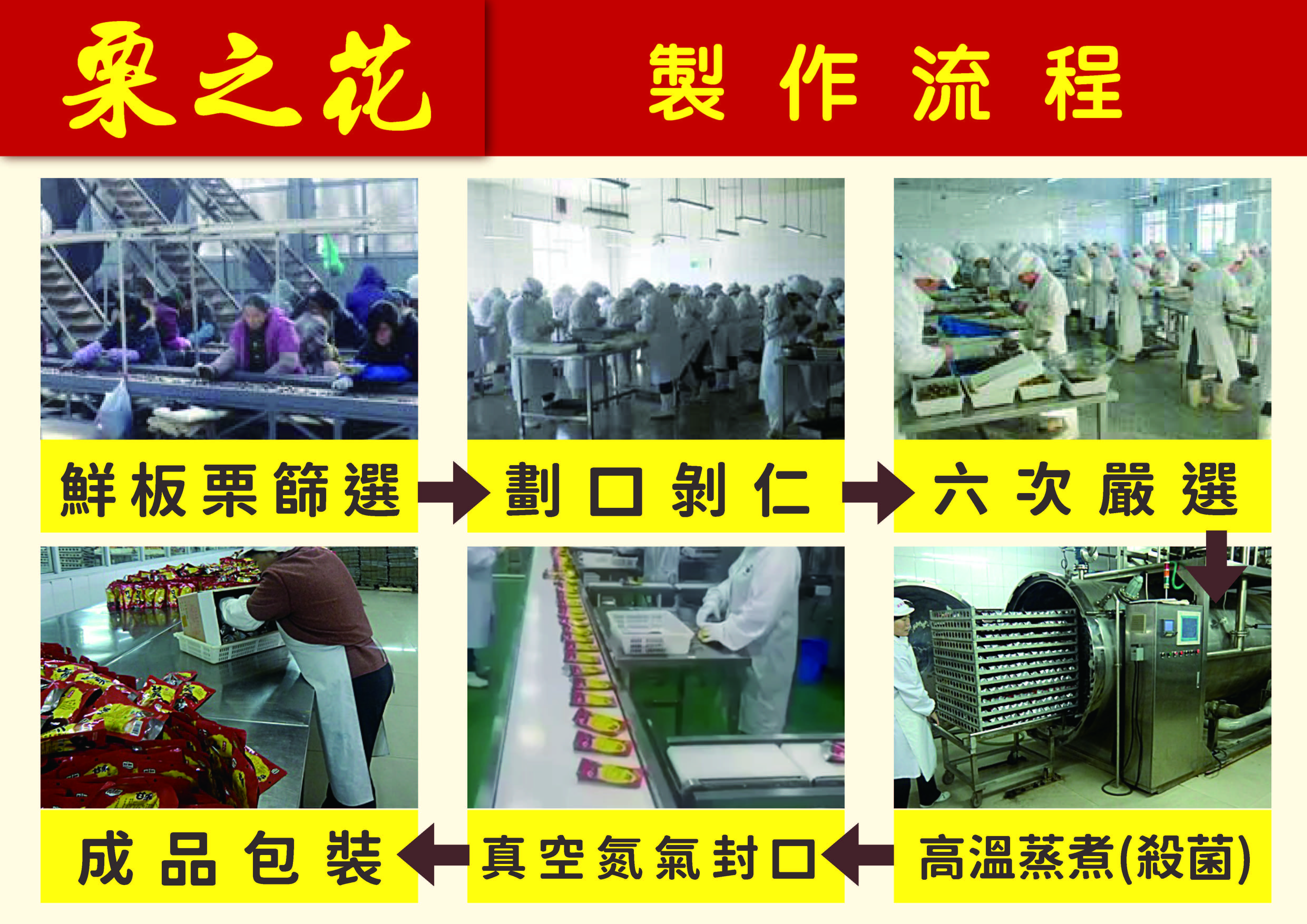 隨著集團發展壯大,打造產、供、銷、科、工、貿一體化的現代化綠色食品產業,建設設施、技術、品牌一流的無公害板栗深加工基地。目前,集團與韓國、泰國、日本、臺灣12家簽約常年供貨合同,年出口量達5000噸以上,公司“栗之花”系列產品銷往國內二十餘個大中城市超市600餘 個,年銷售板栗達萬噸以上。